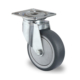75mm Swivel with 10m single bolt hole fitting and a Grey Thermoplastic Rubber Tyre on a Grey Polypropylene Centre. The wheel is fitted with a single ball bearing which reduces the effort required to push. This apparatus / institutional castor has a load capacity of 75kg using manual propulsion at 4km/h (walking speed).