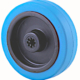 125mm Blue Elastic Rubber Tyred wheel on a Nylon Centre Wheel. This castor wheel has a 36mm Tread Width, 50mm Hub Length and a 15mm Roller Bearing. The load capacity of this is 230kg under manual propulsion at a speed of 4 km/h (walking speed)