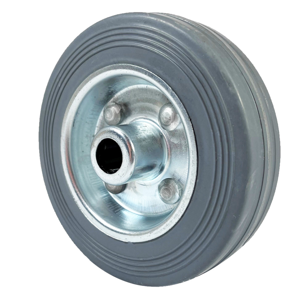 100mm Grey Rubber Tyred Wheel on a Silver Pressed Steel Centre with 12mm Roller Bearing. This is a non-marking wheel with a Load Capacity of 70kg using manual propulsion at 4km/h