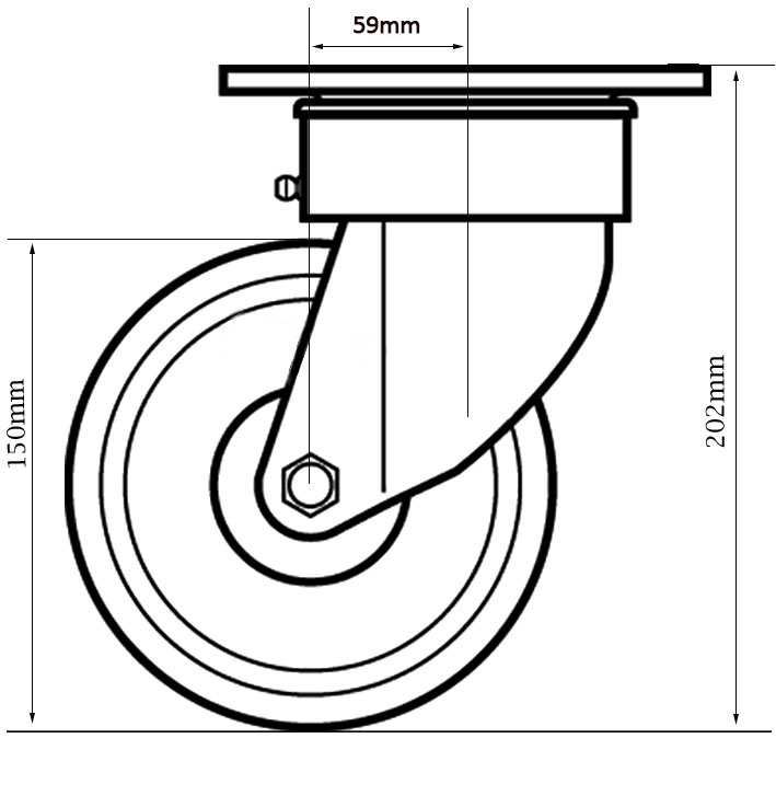 £117.26150mm Heavy Duty Top Plate Swivel Castor (Fabricat... Read Moreed Castor) with 105x80mm bolt hole centres and 202mm overall height. The wheel has a Revvothane Polyurethane Tyre on a Cast Iron Centre with a Roller Bearing. Load Capacity = 730kgThe Bolt Holes of the H series castor are slotted to 120x60mm and 105x80/75mm.- Use 12mm diameter bolts when fitting at 120 x 60mm