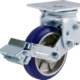 150mm Shock absorbing (14mm Compression) fixed castor and Polyurethane Tyred Aluminium Wheel. Load Capacity = 360kg