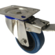 80mm Top Plate Swivel Castor (Stainless Steel Castor) with 80×60 Hole Centres. Blue Rubber Tyre / Nylon Centre Wheel with Roller Bearing. Load Capacity = 120kg