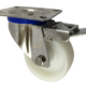 80mm Top Plate Swivel Castor (Stainless Steel Castor) with 80x60mm Bolt Hole Centres. Nylon castor wheel with Plain Bore. Load Capacity = 150kg